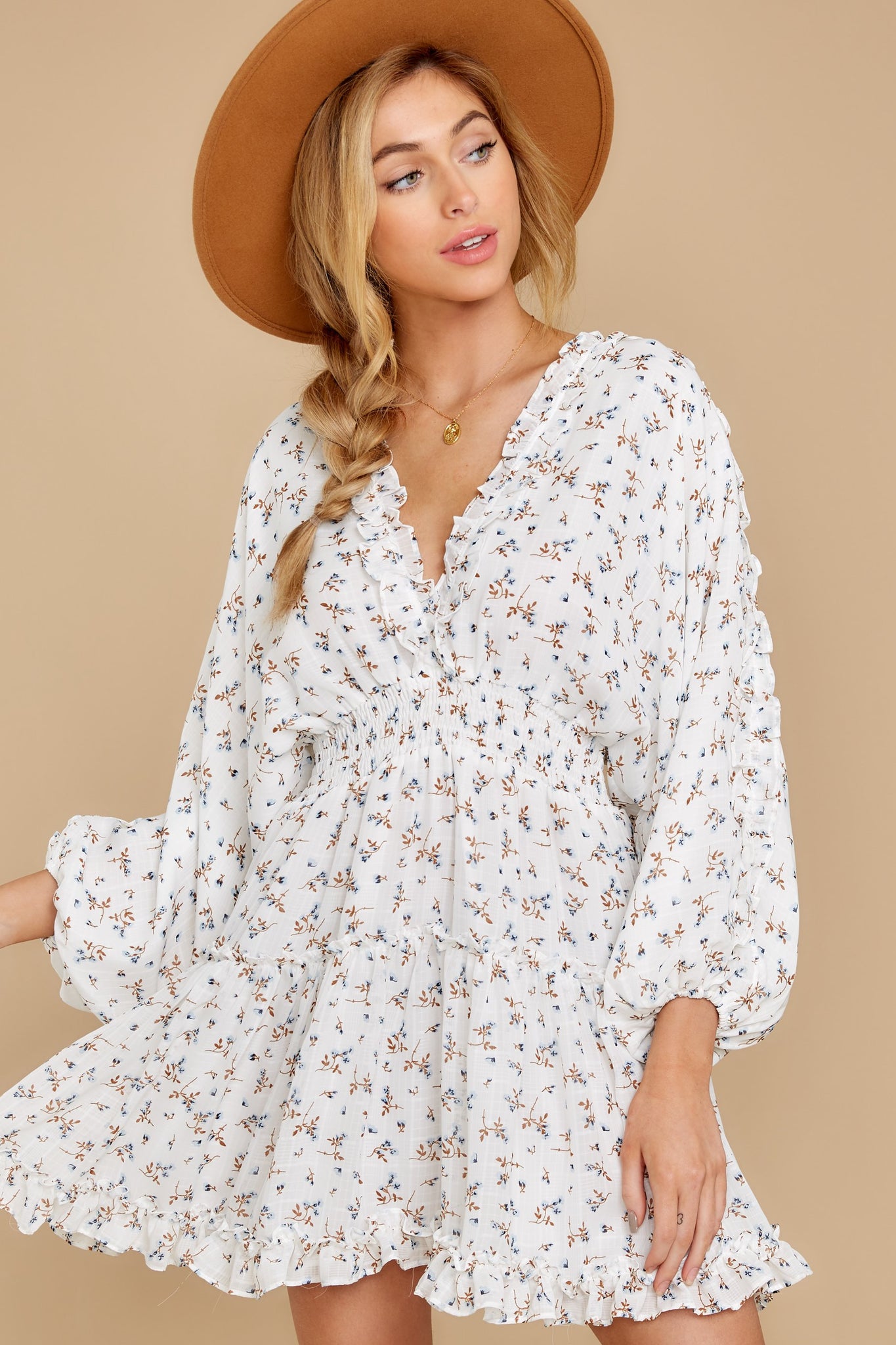 About A Feeling White Floral Print Dress